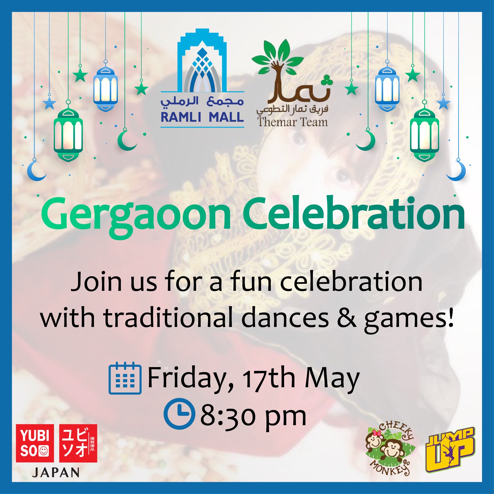 Join us for a fun Gergaoon Celebration at Ramli Mall. Lots of entertaining activities await you. • Traditional Gergaoon Band (Fraisah) • Henna Designing • Face painting • Kids competition, gifts and giveaways • Arabic Traditional Mascots